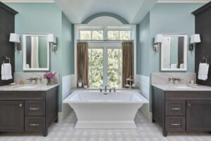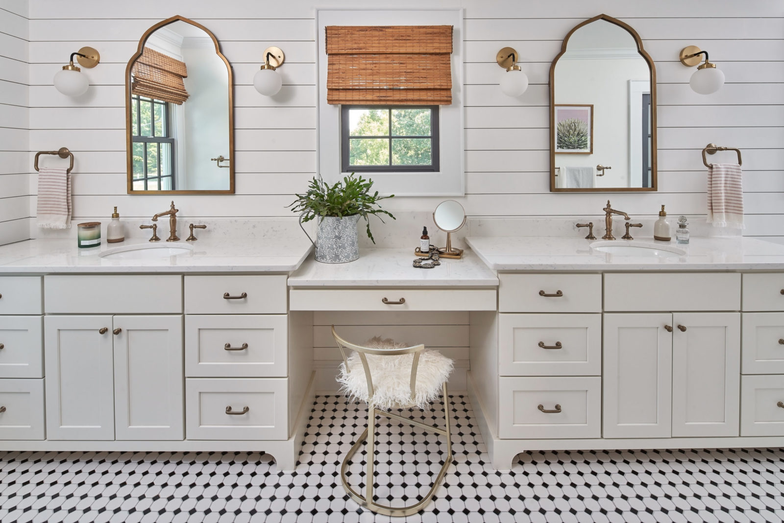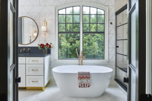 A strategically placed recessed can directly over the sink is another way to brighten up the space and using them in conjunction with wall sconces is what we recommend. Afraid it’ll be too bright? Ask your custom bathroom contractor to install all the lights on a dimmer so you can create the perfect ambiance.