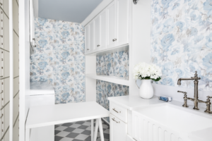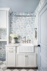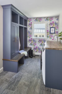 Just because you’ve chosen durable materials for your laundry room and mudroom doesn’t mean the space has to be boring. Accenting small areas with graphic wallpaper or colorful cabinetry adds personality and lightness to an otherwise utilitarian space. You want your laundry room to feel like part of the home, not the garage.