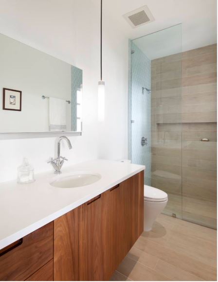 Before selecting tile flooring for the bathroom, consider how you typically use the space. Large-format tiles with a smooth, shiny finish get slippery when wet. Do you get water on the floor when you step out of the shower or tub? Is the bathroom used by children who may be less aware of their splashes and drips? If the answer is “yes,” then a tile rated for wet areas is ideal, but the additional texture is even better. Because adding texture to the tile makes it look more realistic, most wood look porcelain tiles are especially slip-resistant.