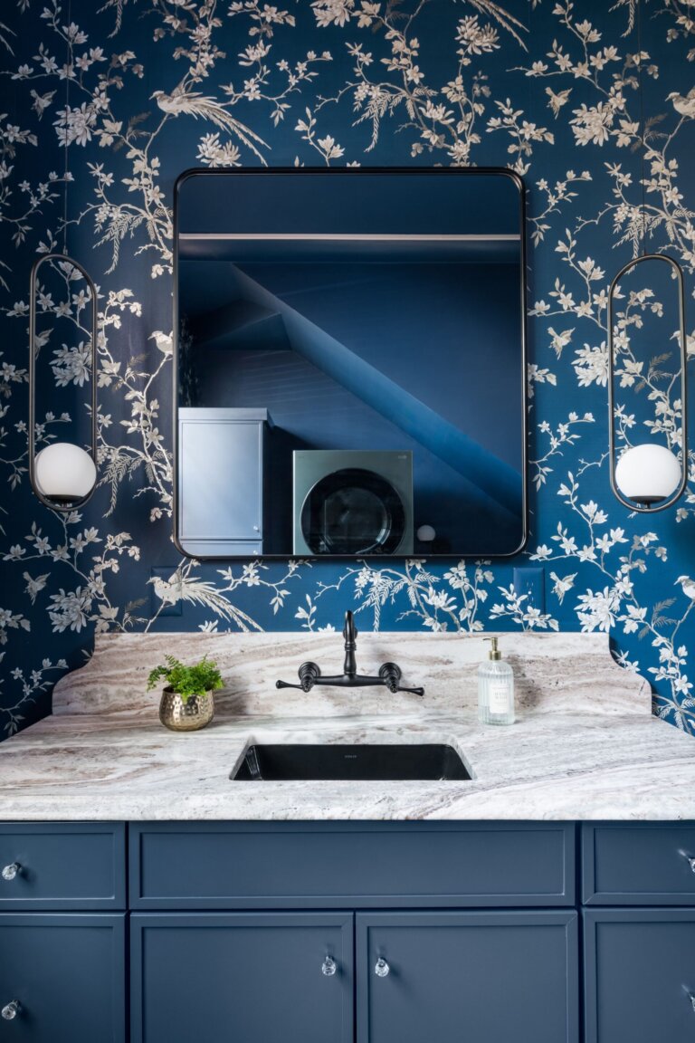 This vibrant multispace remodel transformed what was once a cramped powder room and a barely-there laundry nook into a showstopping blend of beauty and utility. Working with clients who weren’t afraid of bold choices, we reimagined the layout to maximize storage and surprise.