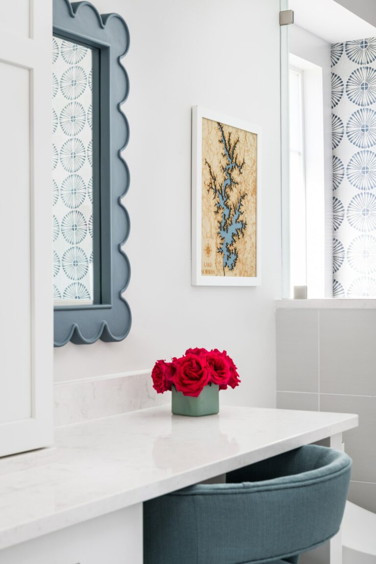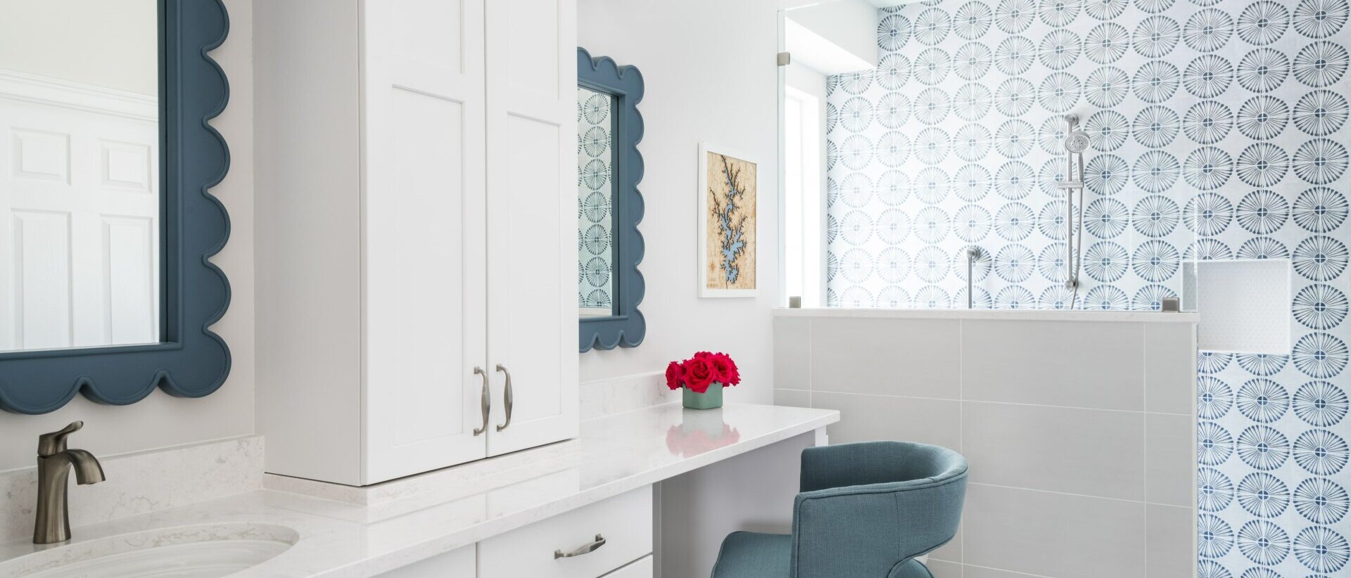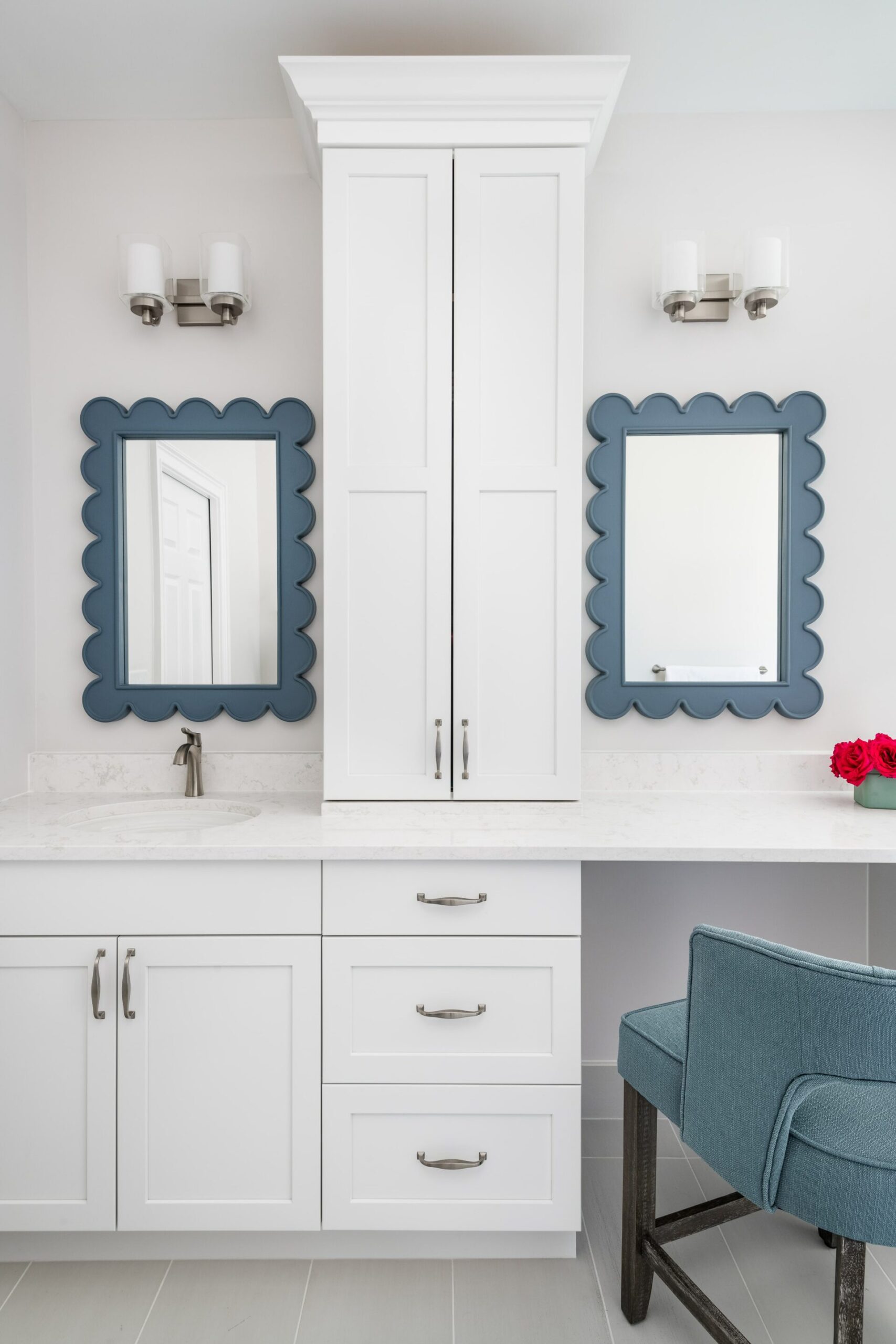 Wanting a space that is uniquely her own, this homeowner opted for a change that would turn her primary bathroom into a personal sanctuary. She selected a single sink instead of a double to truly define the space as her own. The second sink was transformed into a makeup vanity for the homeowner to enjoy her morning routine.