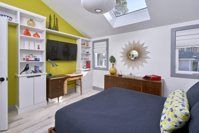 Phase two began when we removed an old kitchenette that was part of an attached mother-in-law suite. In its place a new bedroom with en suite bathroom was added, and the existing guest bedrooms and remaining hall bathroom were redesigned to create better traffic flow throughout.