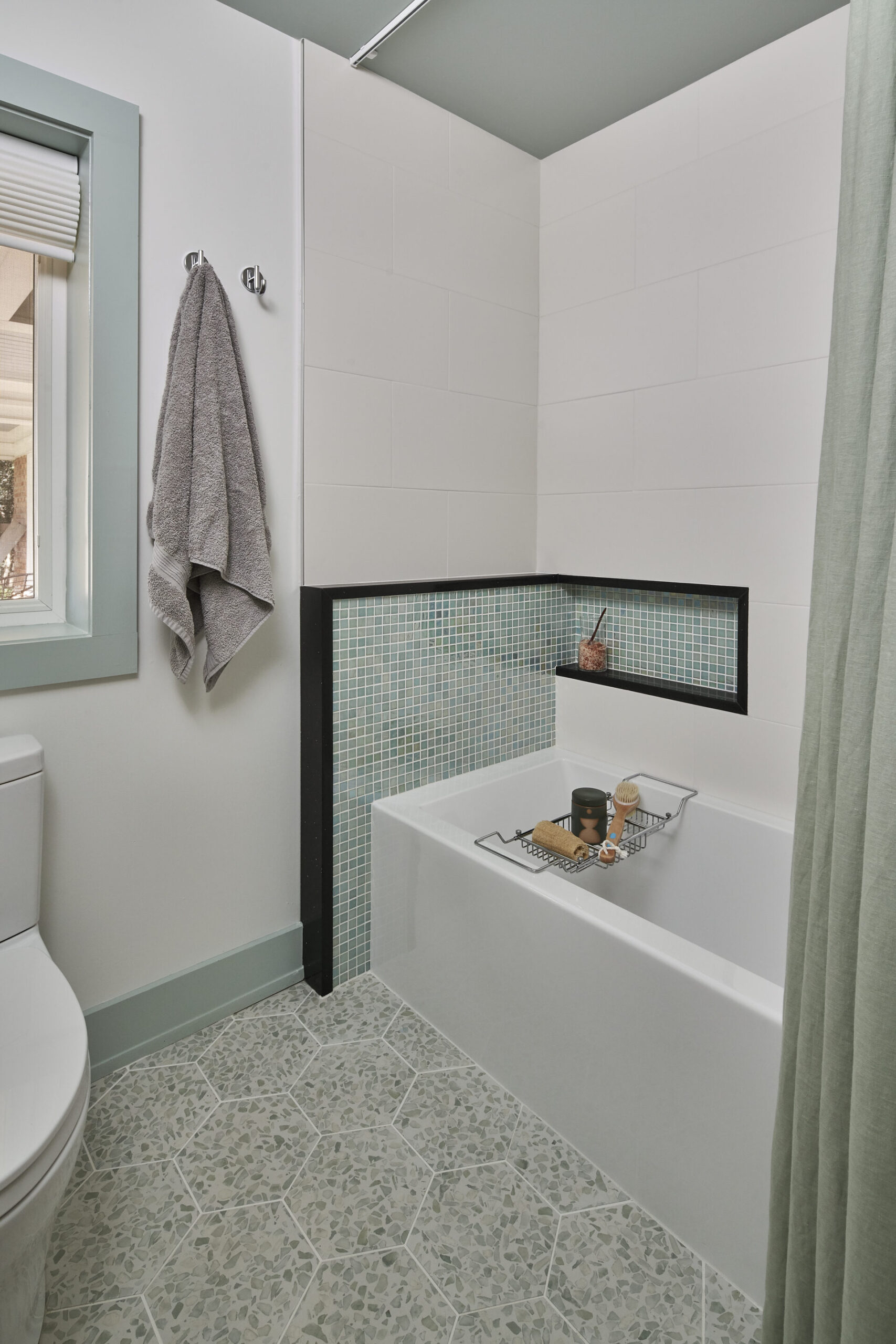 By repeating various design elements throughout each space, the renovated areas in this mid-century modern lake house remodel feel more cohesive and intentional. Continuing this theme throughout each phase ensures that once complete, the whole house will feel like it was designed and executed at one time.