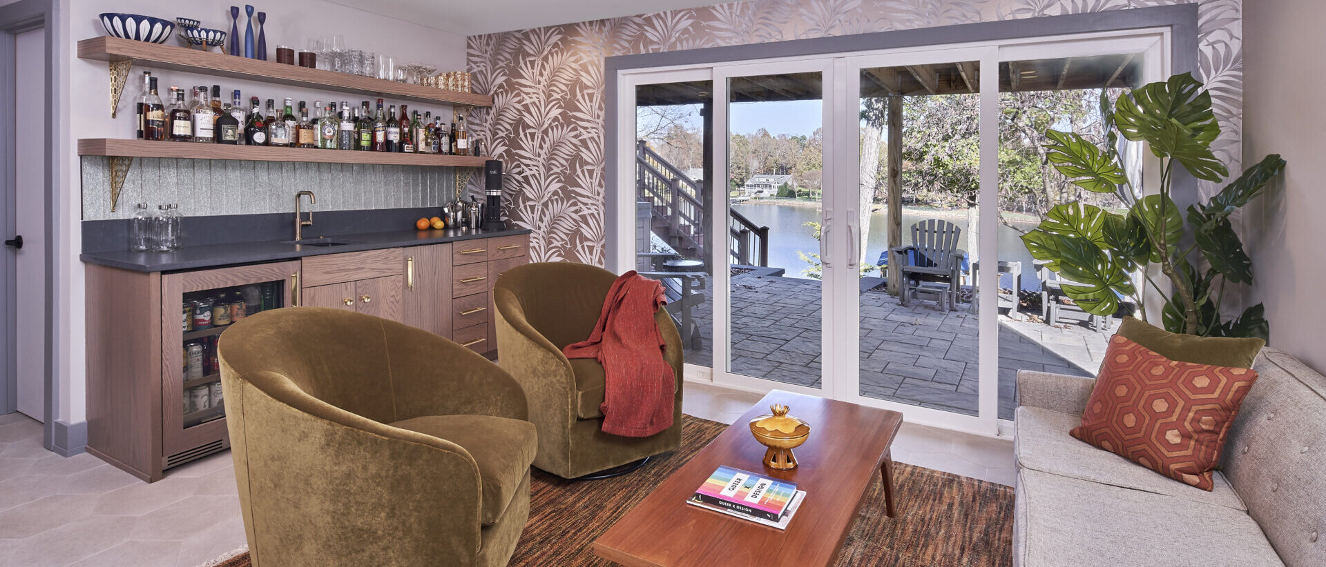 When they bought this 1975 waterfront lake house in Denver, NC, this couple had a grand vision for bringing it back to life. Several updates and a disjointed addition by previous owners left it an architectural hodge-podge that felt like two separate houses connected by a maze of inefficient hallways and a living room. They had a clear vision of how to rebuild the structure from the inside out to create a more cohesive and efficient layout. Their goal was to restore the aesthetic back to its mid-century modern roots while injecting their own personality into the design along the way. Though they knew it would take several years to tackle the project over multiple phases, the property was one they were willing to invest in to create the lake house of their dreams.