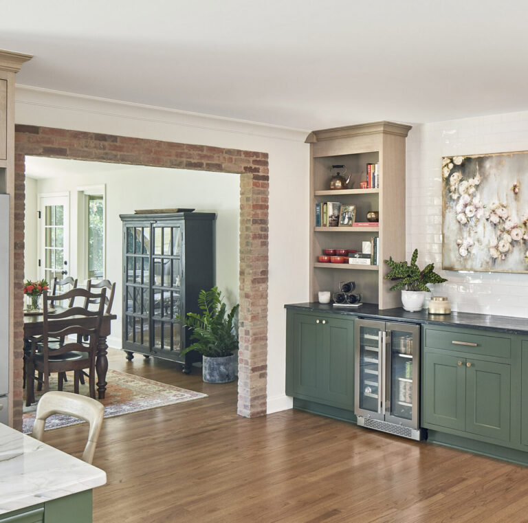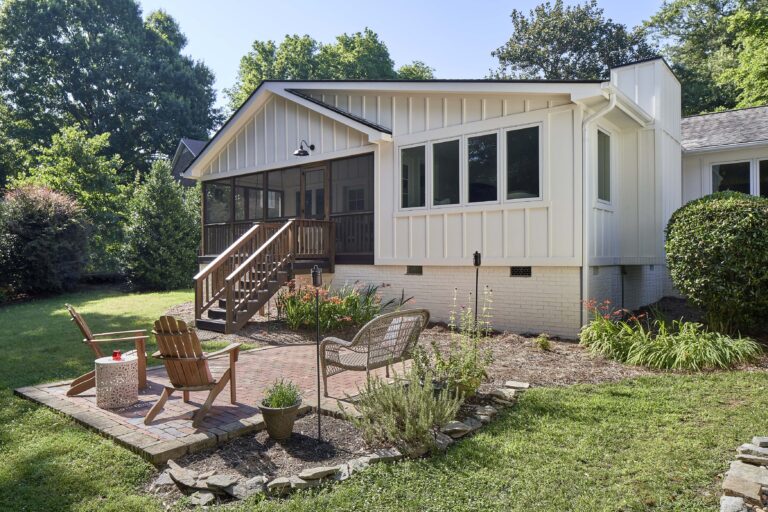 The project centered on a thoughtfully designed 450-square-foot addition that expanded both the functionality and livability of the home. This new space introduced a light-filled dining area, a spacious primary suite complete with a walk-in closet, and a screened porch that creates a seamless connection between the interior and the backyard. The addition also made room for a more practical layout, allowing for the inclusion of a dedicated laundry and mudroom, a walk-in pantry, and a conveniently located powder room. Within the primary suite, the expanded footprint provided space for a larger bathroom featuring a walk-in shower, soaking tub, and a calming, nature-inspired palette that ties beautifully into the rest of the home.